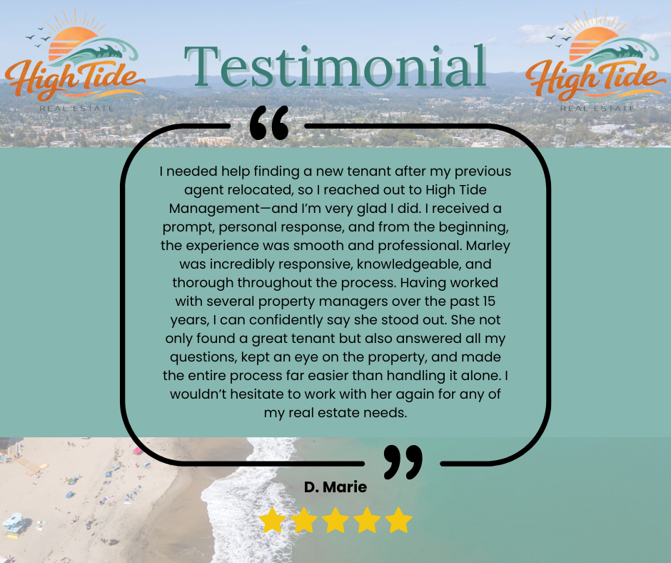High Tide Real Estate is the premier property management firm along the Central Coast, serving Santa Cruz and Monterey Counties. Our experienced team of residential and commercial property experts is here to ensure that your real estate investment is managed effectively and efficiently. We offer a full range of services to meet the needs of our clients, from tenant screening and leasing to maintenance and repair.